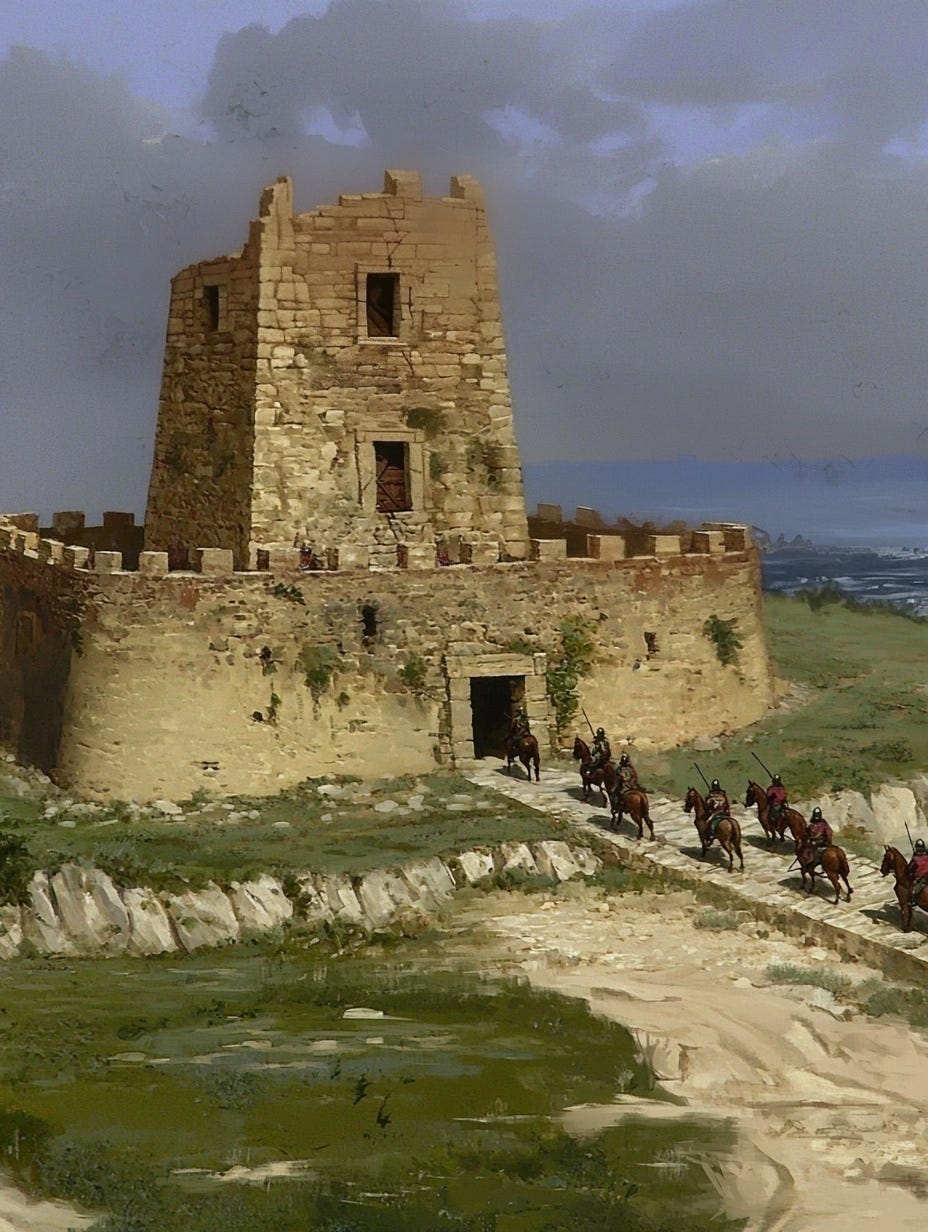 The tower’s garrison numbered fewer than sixty souls. In the morning they drilled on the turf with wooden spears, their breath steaming in the cold. Afterward, they fetched water from the cistern, mended their cloaks, and grumbled about pay that would never arrive. At dusk, they climbed the stairs to watch the sea until night hid it from view.