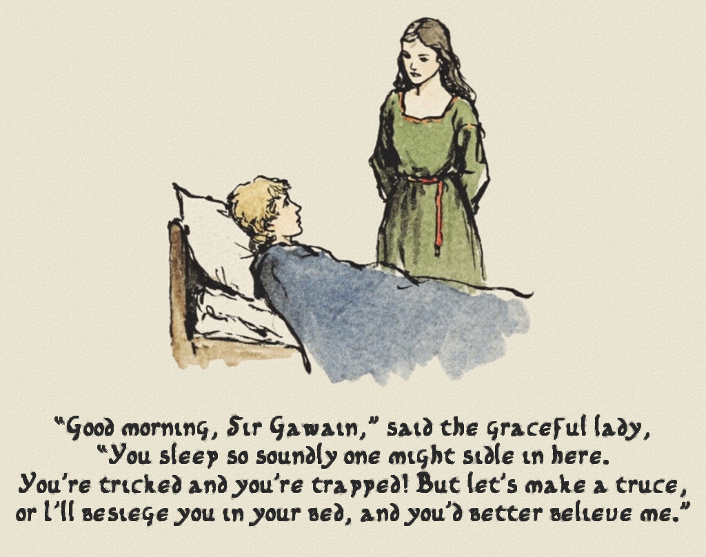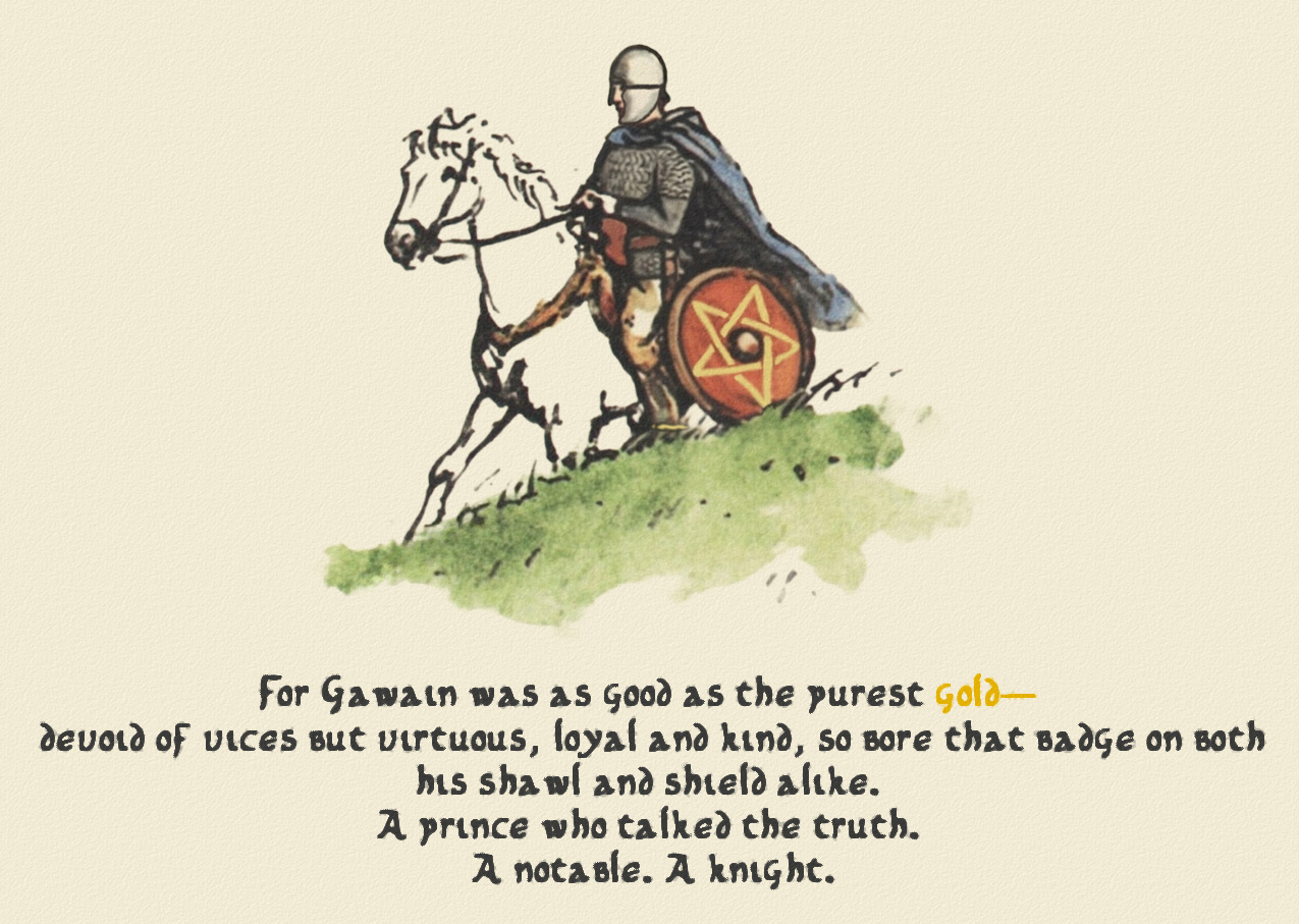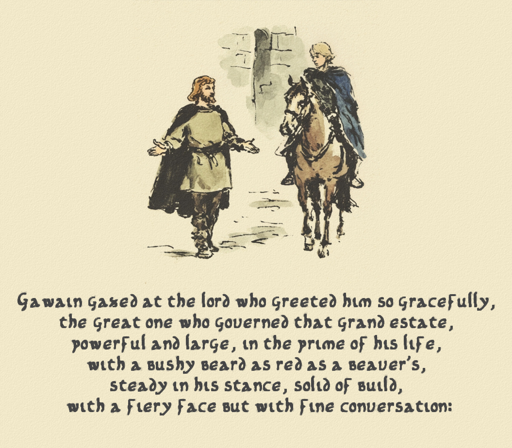 Gawain as if by divine guidance sees a castle and approaches. The Lord greets him and welcomes him to shelter, setting up the Gawain Poet’s rendition of a Temptation Fable.