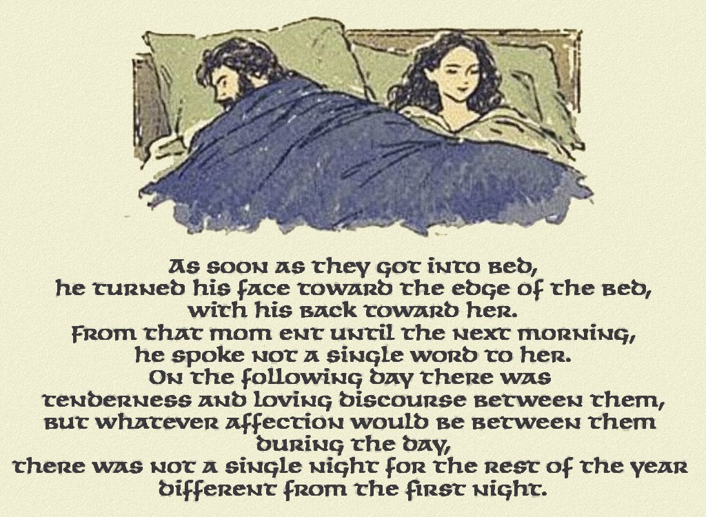While the temptation fable is a common motif, the root here may come from the Welsh tale of Pwyll Pendefig Dyfed from the Mabinogi. Pwyll, though transfigured into Arawn, abstains from relations with Arawn's wife, similar to Gawain and the Lady Bertilak.