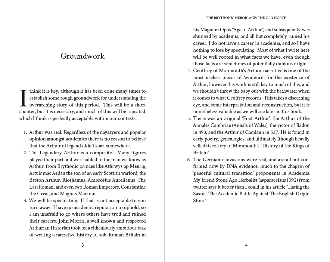 I have made the decision to release an abridged version of my upcoming book “The Brythonic Heroic Age”. This version will focus on the Hen Ogledd, or Old North, the region from which my ‘Northern Arthur’ hails. I am still planning on releasing a complete version, including biographies for most major figures from the period, and a narrative history of the kingdoms in Wales, Devon, and Cornwall, combining them with the history of the Hen Ogledd to paint a grand island-wide Narrative. This larger version is quite ambitious, and I am currently working on the various biographies I have left, which span another four generations, as well as some I have not touched on in prior generations. This abridged version should be much easier to digest for most, as as such will be more accessible. I hope to be done sometime next month! Below is a brief preview of my first chapter.