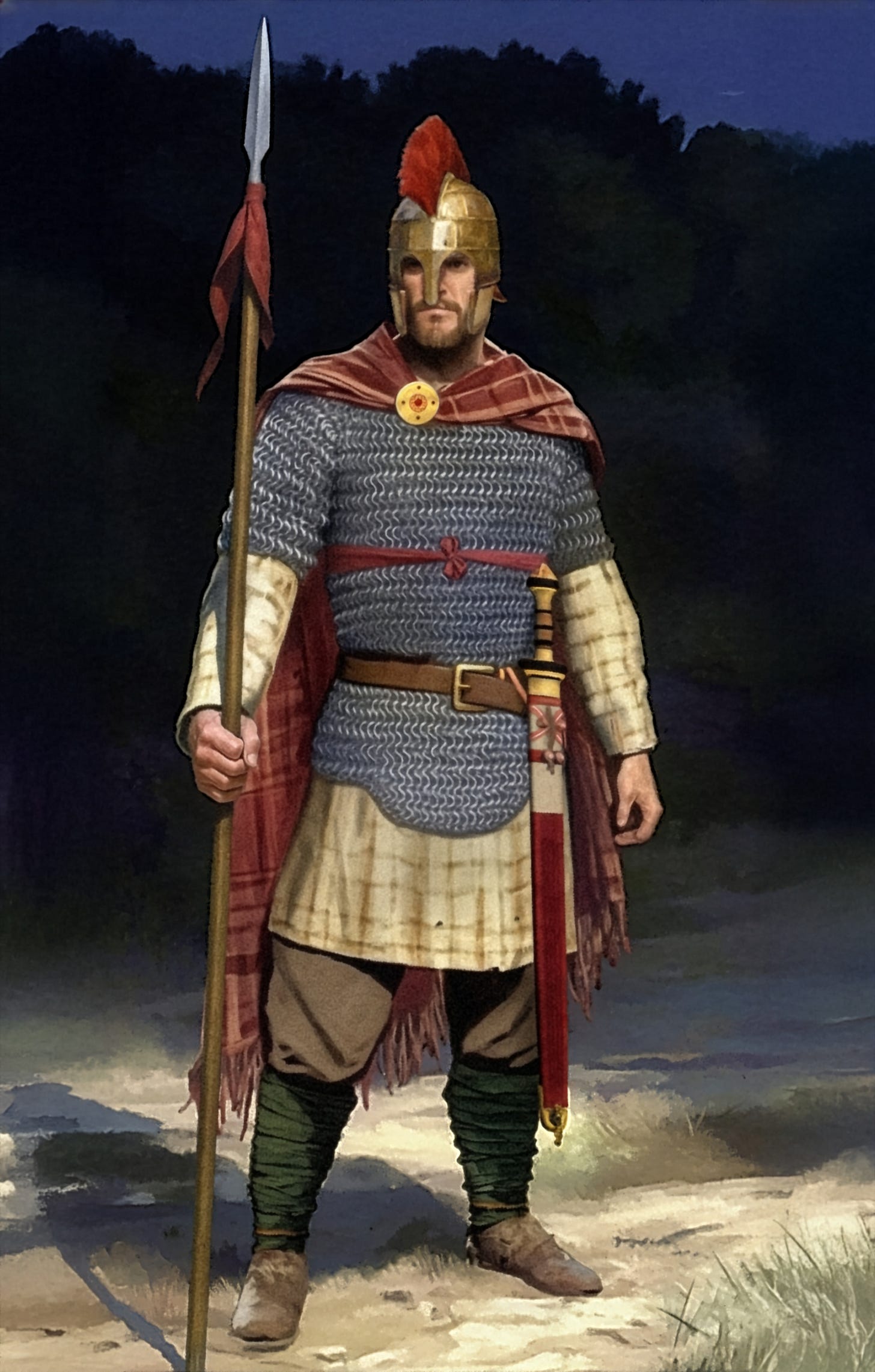 has an upcoming article reevaluating the origins of Wessex and Mercia, both shrouded in founding myth, and ripe with Brythonic names, so I thought it would be nice to present some reconstructions of Penda and Cadwallon, two rulers seemingly entwined by the common goal of subduing the power of the emerging Kingdom of Northumbria under Edwin. One naturally questions how this came to be, and the accepted theory is that Wessex and Mercia stem from a mixed population, possibly Brythonic nobles who adopted Germanic customs and led Germanic troops, founding essentially Germanic kingdoms. I will not delve into theories here, but instead want to present my most recent reconstructions, starting with Cadwallon.I will leave the reevaluation of Cadwallon’s lineage out here, as I have spoken on it before, from what we can glean however, he seems to have spent some time in exile in Ireland, if we are to believe a fragment of a poem directly attributed to Cadwallon from Peniarth MS. 21, from there he sailed for Priestholm, where he set up a temporary base where he was besieged by Edwin. Edwin was ultimately unsuccessful in his attack, and Cadwallon, allied with Penda, won the Battle of Cefn Digoll against him, sending Edwin back to the North. Cadwallon and Penda eventually met Edwin again, this time at the Battle of Hatfield Chase, where Edwin and his son Osfrith were killed. Another son Eadfrith was captured, and later killed by Penda. Cadwallon then began his domination of the North, eventually besieged by Osric of Deira, “In a strong town” (most likely York). The siege was destroyed when Cadwallon “sallied out on a sudden with all his forces, by surprise, and destroyed him [Osric] and all his army.” Bede then leads us into a period of a year where Cadwallon rules as a tyrant, no doubt tainted by political sentiment, though this may refer to a campaign to expunge the territory of Anglian power. During this time Cadwallon supposedly kills Eanfrith the new king of Bernicia while the later had come to negotiate terms of peace. Eanfrith was the son of Aethelfrith, the powerful precursor to Edwin, who drove Edwin into exile when he was only three years old. Eanfrith in turn was exiled when Edwin returned and took power, seemingly with the Picts, this led to his son Talorgan sitting for a time as king of the Picts1. Cadwallon eventually is defeated at the Battle of Heavenfield by Hadrian’s wall by Oswald of Bernicia, Eanfrith’s brother.